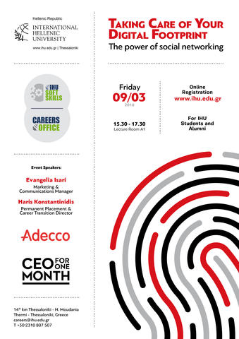 Careers Office › Career Events › CEO for One Month program presentation / Career Workshop: Taking care of your digital footprint – The power of social networking